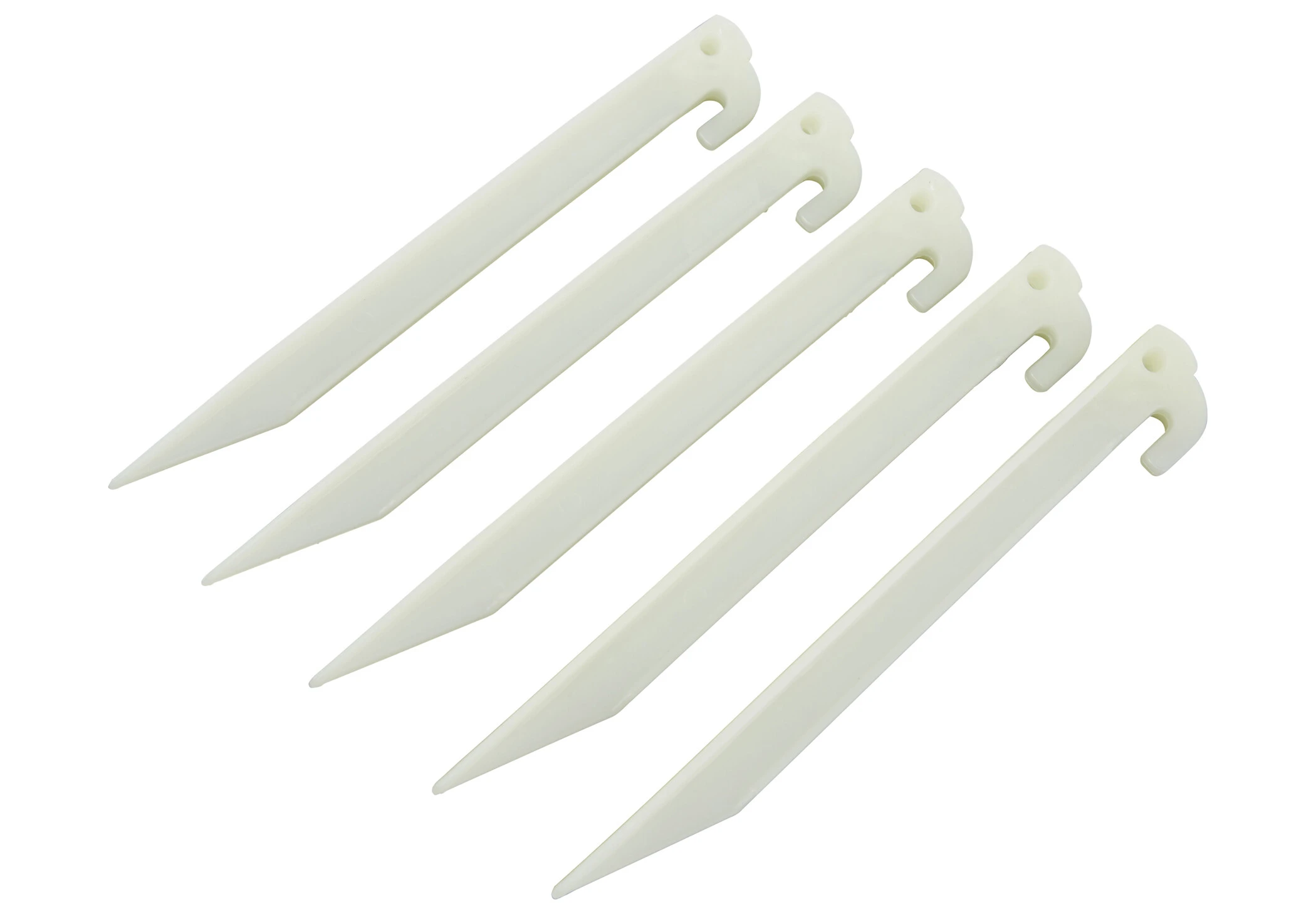 Heldere plastic tentharingen lijken misschien speelgoed voor sommigen. Maar als je in het donker steeds struikelt over verdwaalde haringen en scheerlijnen, of soms je tent zonder daglicht moet opzetten en afbreken, weet je hoe handig het is om gloeiende haringen te hebben, die je de weg te wijzen. Ze laden zowel onder de zon als onder kunstlicht op en gloeien dan in het donker. Bovendien zijn deze plastic haringen veel lichter dan vergelijkbare modellen van metaal en zijn ze robuust genoeg voor gemengde bodems. Dankzij de brede dwarsdoorsnede kunnen zij tenten en lijnen stevig in de grond verankeren en verdraaien zij niet zoals grondpennen. Zo staat je tent stevig als er stormvlagen opkomen, en kun je zich ’s nachts oriënteren aan de gloeiende haringen.